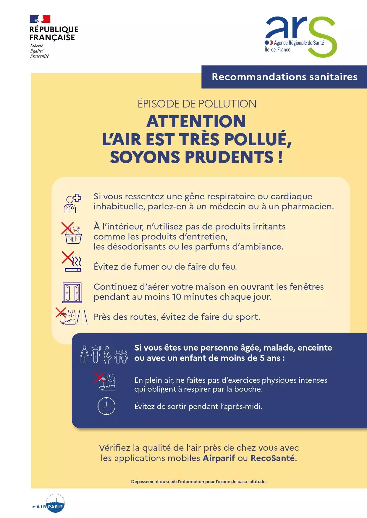 Suivez l’évolution de cet épisode de pollution de l’air sur les sites internet d'Airparif et RecoSanté.