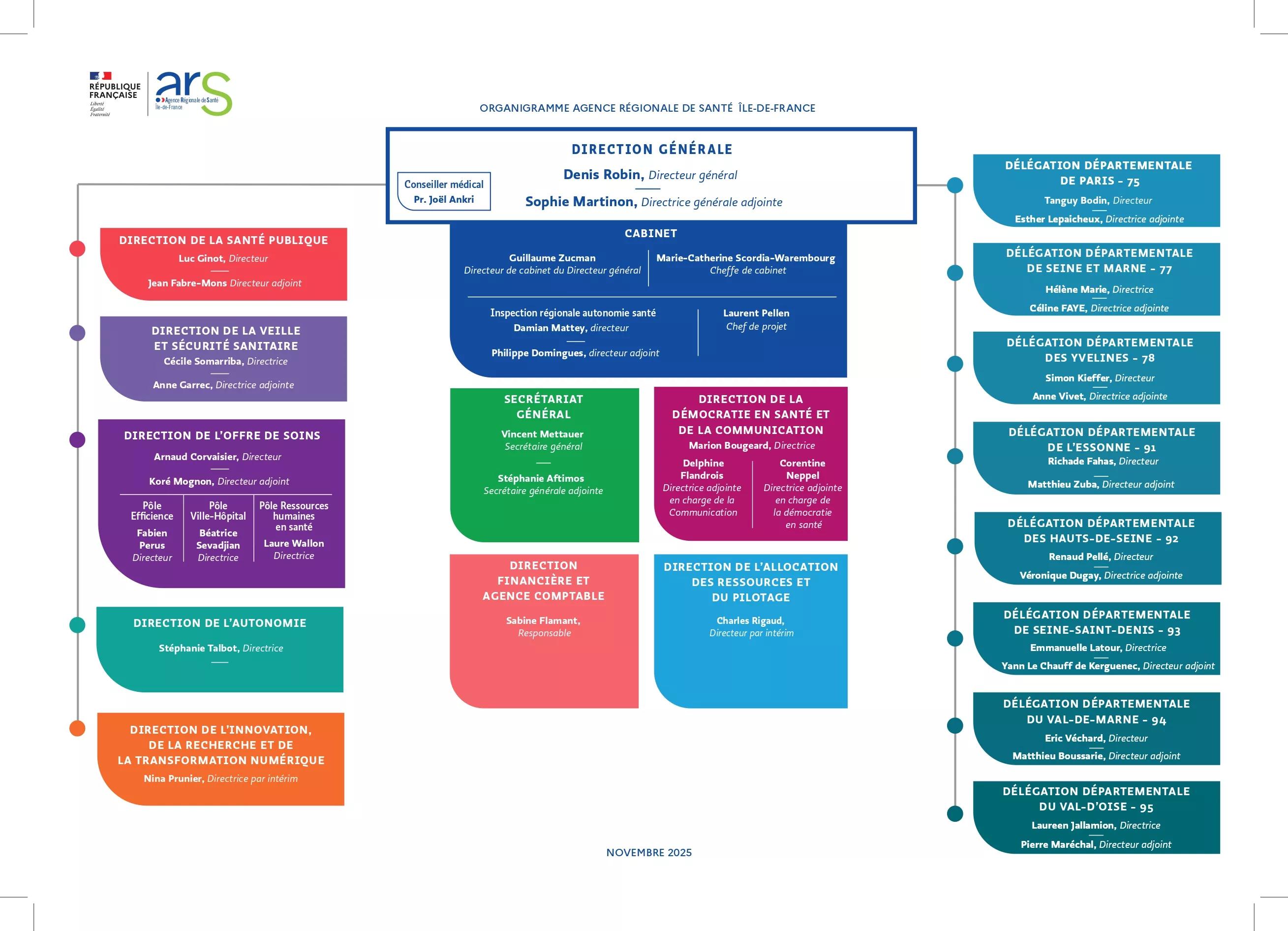 L’organisation de l’ARS Île-de-France est structurée en directions et en pôles de compétences.