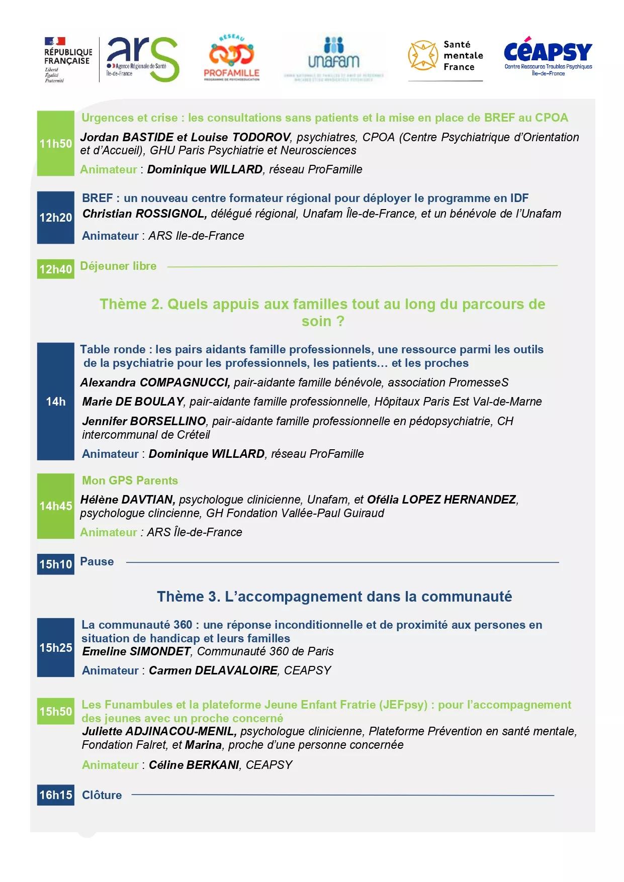 Cette journée d’échanges et de partage, à destination de tous (professionnels ; familles ; personnes concernées), avait pour objectif de présenter des ressources existantes pour les familles, à chaque étape du parcours de soins et d’accompagnement de leur proche. Elle s'est déroulée le mardi 16 décembre 2025, de 8h30 à 17h, au Centre des Colloques, Campus Condorcet, Aubervilliers.